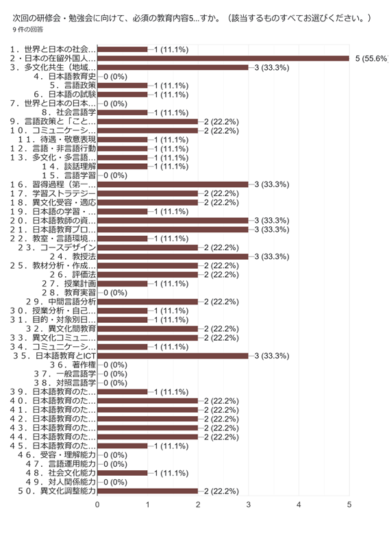 次回の勉強会に向けて、必須の教育内容50項目において、どちらを更に学びたいですか。(該当するものすべてをお選びください。)